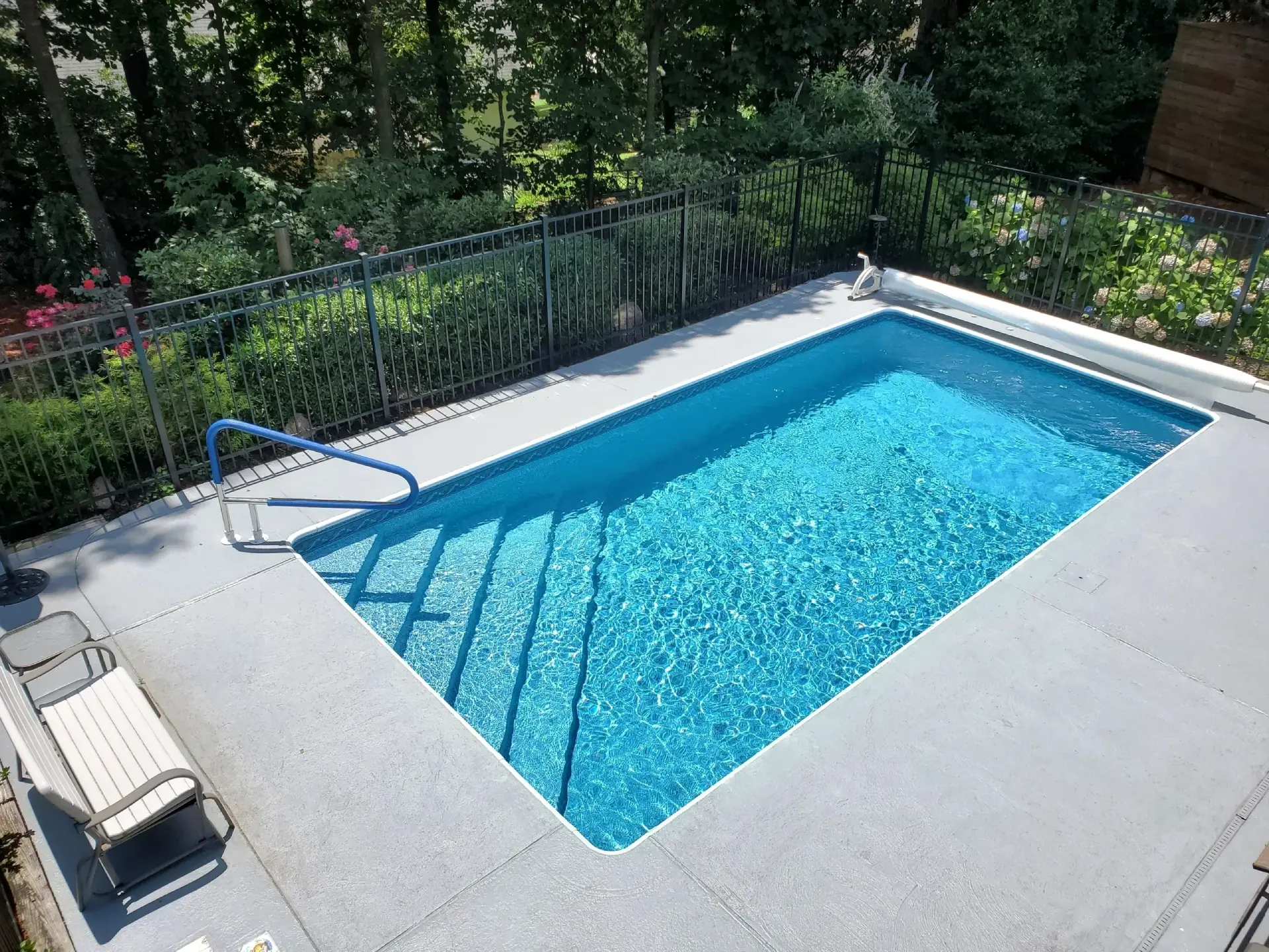 Safety pool covers provide years of worry-free use and make maintenance simple. Custom designed to fit any pool, safety pool covers can make your pool attractive, keeping dirt, debris and small animals out of your pool during the off season. Safety pool covers secure your pool from children and pets who may wander across the top. They are secured by brass concrete anchors, stainless steel springs and woven with heavy-duty straps to create a form-fitting safety cover that can support even the heaviest load. Safety covers are available in mesh or solid in a variety of colors.